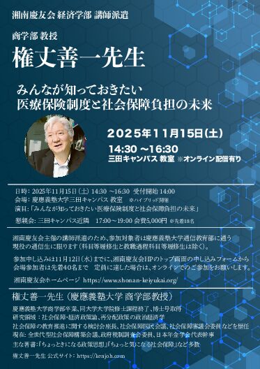 【2025年11月度 講師派遣_経済学部】11月15日(土)_商学部 権丈 善一 教授〔開催概要〕